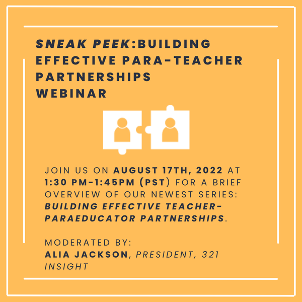 Over two weeks of instruction are lost every year to disruptive student behavior, and paraeducators are often on the frontlines of it. More than ever, it is essential to provide paras with the job-specific, bite-sized training they need to feel supported and skilled in addressing challenging behavior.This very clear and critical need inspired us to build ParaSharp, an online PD solution that builds confidence, improves effectiveness, and increases job satisfaction for paraeducators. This on-dema...